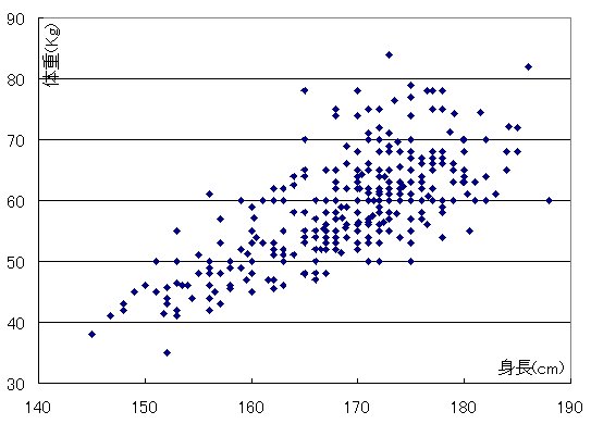 プロット : taijyuu*shintyou 凡例 : A = 1 obs, B = 2 obs, ...