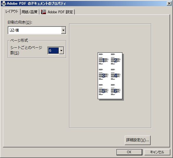 [ページ形式]で[6]を選択する(場合よっては4を指定する)。: