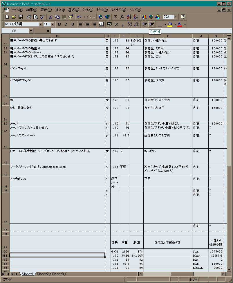 167 60 94 172 58 不明 156 61 90 162 62 100 166 60 88 167 58 不明 168 57 不明 168 62 80 170 58 88 170 60 不明 |